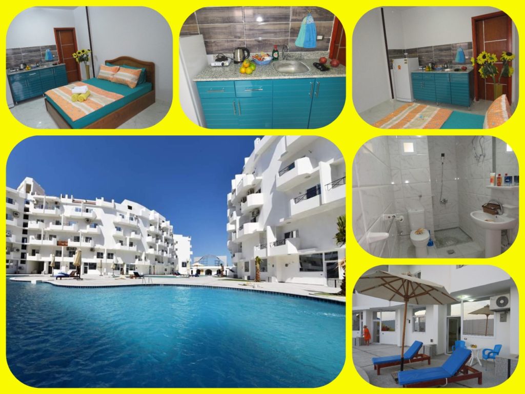 The compound has 5 swimming pools and aqua park. The beach is only 400 meters away.