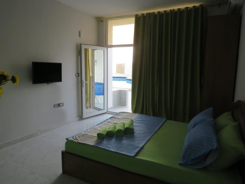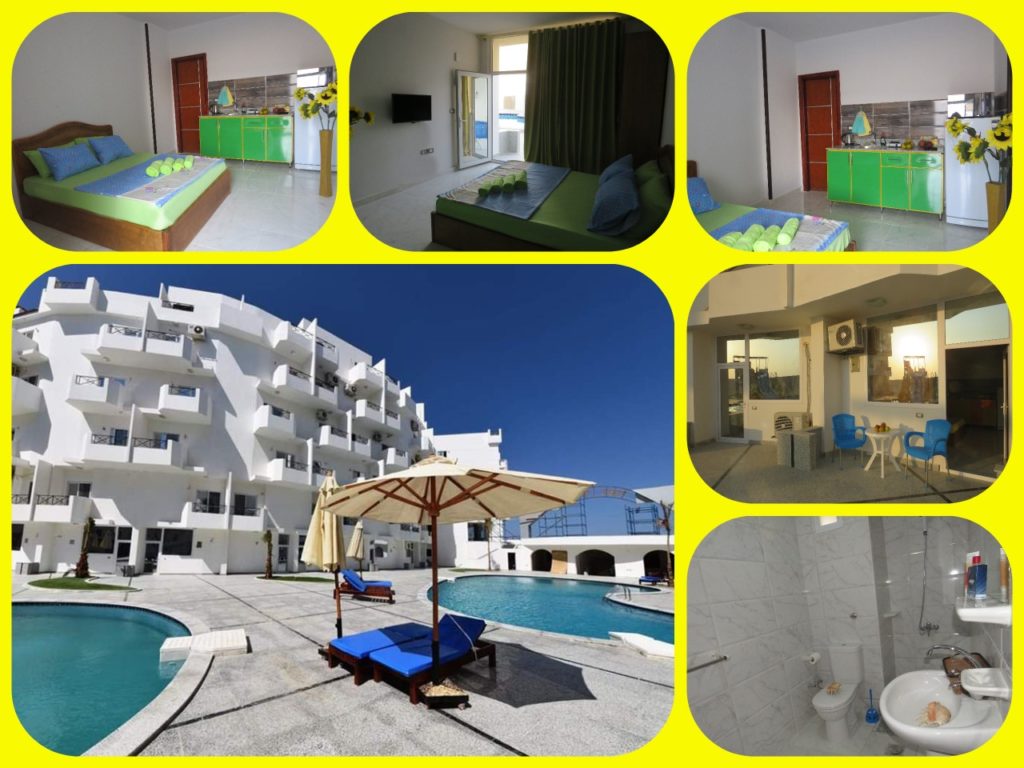 The compound has 5 swimming pools and aqua park. The beach is only 400 meters away.