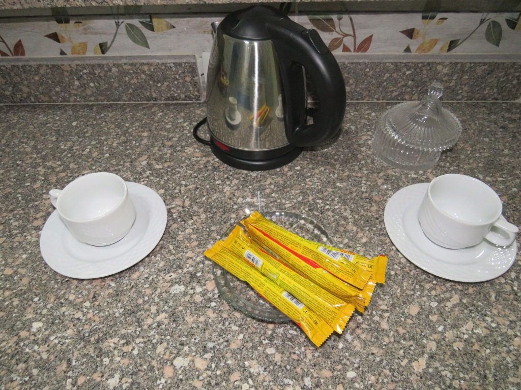 Free mini-bar (several types of excellent tea, coffee, milk for coffee, coffee with milk, hot chocolate and other hot drinks, sugar, sugar substitute, jam, chips, crackers, croissants, chocolate, cookies etc.). Also in the minibar is drinking water, coca-cola, sprite.